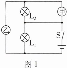 2. 图 1 所示的电路中,甲、乙均为电表,若闭合开关后,灯 $L_1$、$L_2$ 都发光,则(