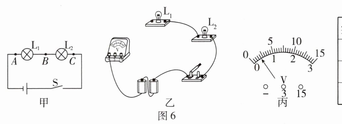 7. 小刚用图 6 - 甲所示的电路图来探究串联电路中电压的规律。
