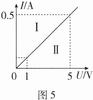 10. 某电阻器的 $ I - U $ 图像如图5所示,该电阻器的电阻是