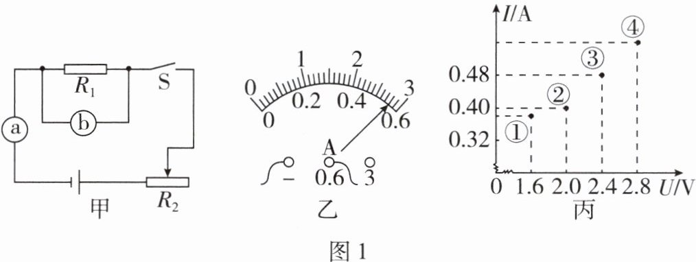 $ A $。(5) 小明根据四次实验数据描出的点如图1 - 丙所示,老师看到后指出其中一次的实验数据有误,错误数据对应的点是