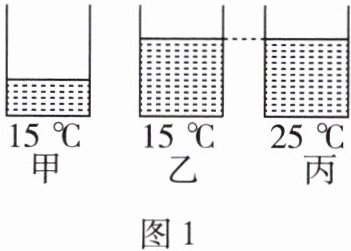 2. 甲、乙、丙三个相同规格的容器内均装有水,水的体积、温度分别如图1所示。分析可知: