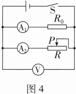 4. 如图 4 所示,电源电压不变,闭合开关 S,在滑动变阻器的滑片 P 向右移动的过程中,下列说法正确的是(