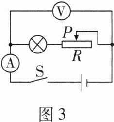 3. 如图 3 所示,电源电压不变,闭合开关 S,当滑动变阻器的滑片 P 向右移动时(