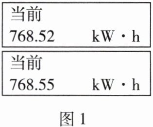 3. 某天小明利用电能表和手表测量电视机的电功率,他关闭了其他用电器后,让电视机单独工作 15 min,工作前后电能表的示数如图 1 所示,则 15 min 内电视机消耗的电能为