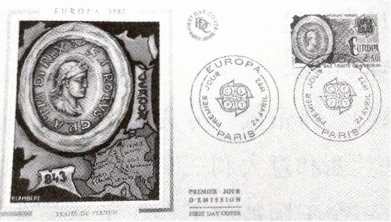 10. 下图是法国发行的一枚纪念843年签订《凡尔登条约》的首日封。该条约奠定了以下哪几个欧洲国家的雏形(