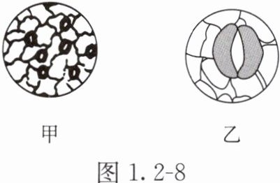 在观察叶片的表皮细胞装片时,物像由图 1.2 - 8 的甲转换到乙,不需要进行的操作是(