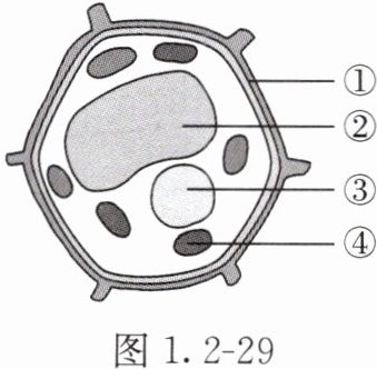4. 图 1.2 - 29 是某同学制作的植物细胞模型,①~④表示的结构中,能控制生物生长、发育和遗传的是(