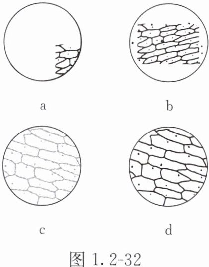(填“物镜”或“目镜”)。(5)要使视野从图 1.2 - 32 所示的 a 变为 b,应将装片向