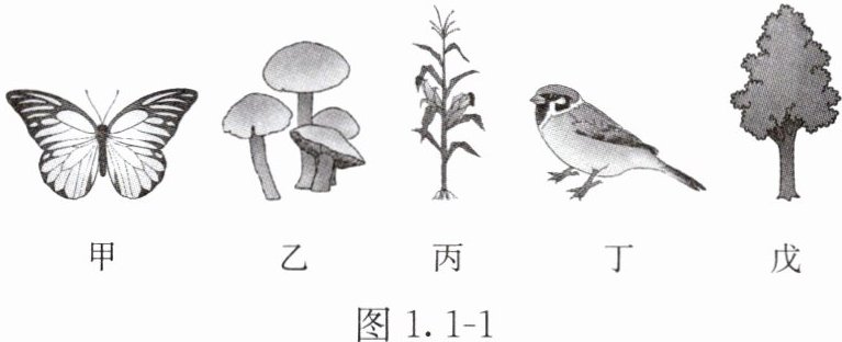 (2)图 1.1 - 1 所示生物中属于动物的有