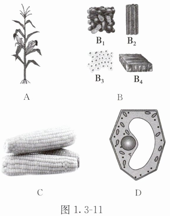 7. 图1.3 - 11为玉米植株结构层次图,据图回答下列问题。