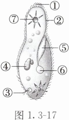 8. 生物学课上同学们用显微镜观察草履虫的生命活动,并绘制了草履虫结构示意图(图1.3 - 17)。请回答下列问题。
