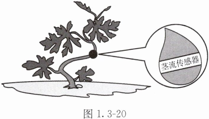 6. 我国科学家发明了一款新型植物茎流传感器(图 1.3 - 20),可直接贴附在茎秆、叶片等表面,监测植物体内水分的运输及分配情况。由此推测,该传感器可监测的植物组织是(