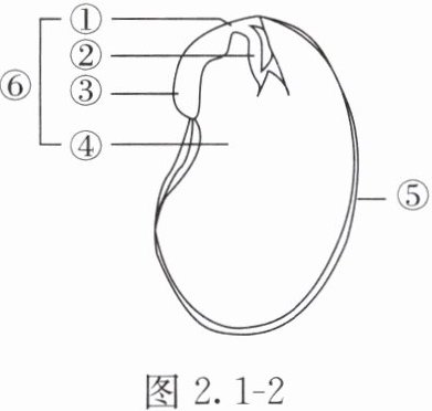 (4) 认识菜豆种子的基本结构(图 2.1 - 2)