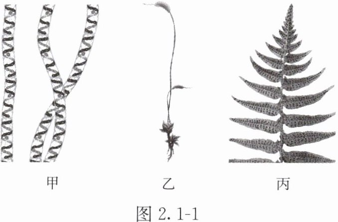 萌萌采集了若干生物,带回实验室观察。请据图2.1-1回答下列问题。