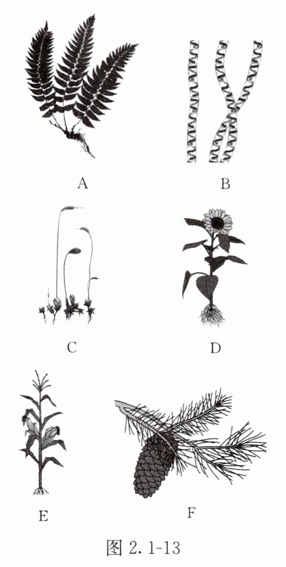 图 2.1 - 13 是常见的几种生物,请据图回答下列问题。