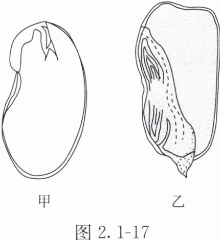 10. 图 2.1 - 17 是菜豆种子和玉米种子的结构示意图,请据图回答下列问题。