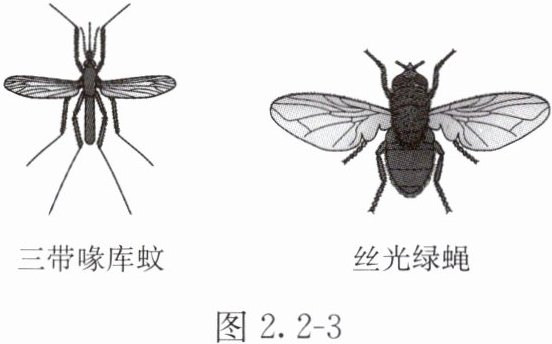 跟踪练习2 夏季是蚊、蝇繁殖的高峰期。图2.2-3是某地常见的蚊、蝇品种。下列有关叙述错误的是(