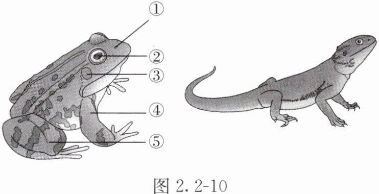 8. 图 2.2 - 10 是青蛙和蜥蜴的示意图,请据图回答有关问题。