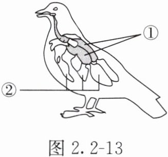 2. 图 2.2 - 13 为家鸽呼吸系统结构示意图,下列叙述不正确的是(