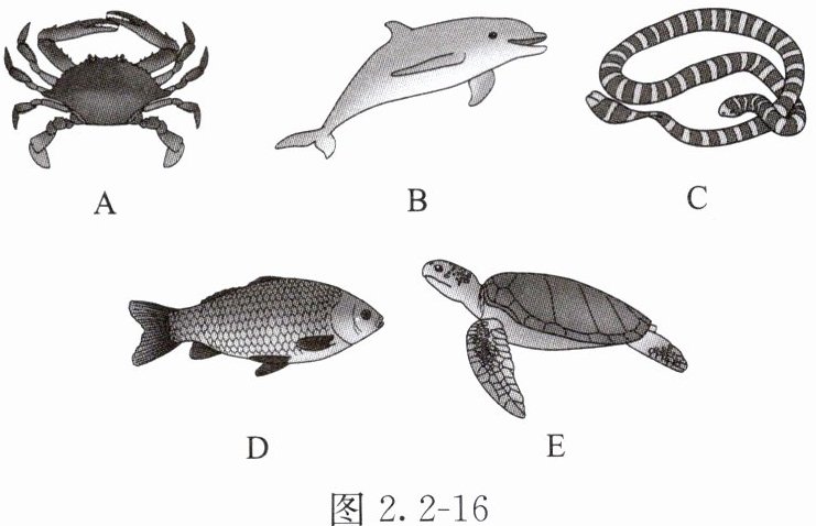 12. 海洋覆盖了地球表面的约71%,海洋中生物物种十分丰富。图2.2-16所示为海洋中的部分生物。