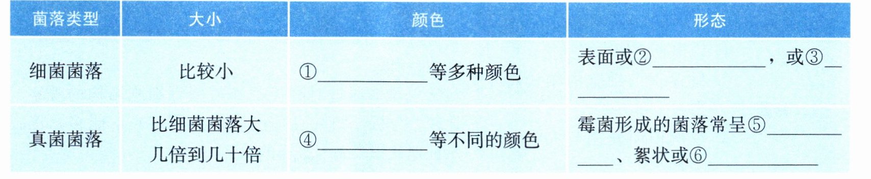 (2) 从菌落的大小、颜色和形态,可以大致区分细菌和真菌。