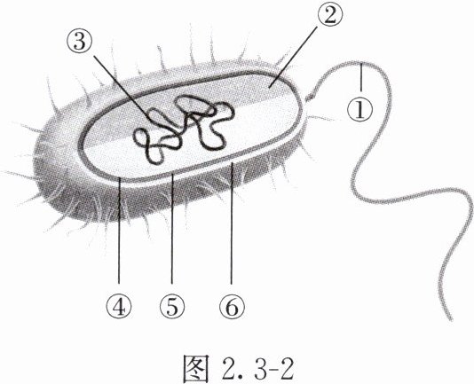 (1)球菌 杆菌 螺旋菌 单细胞(2)⑤ 细胞壁 ④ 细胞膜 ② 细胞质 ③ DNA 成形的细胞核 原核生物 ⑥ 荚膜 ① 鞭毛(3)光合作用 现成的有机物 无机物(4)分裂生殖(5)芽孢 休眠体