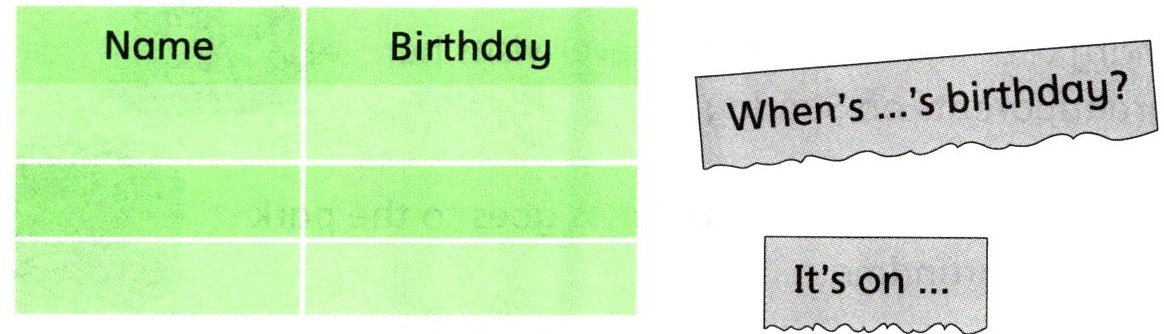 Do a survey (问一问,填写同学的生日)