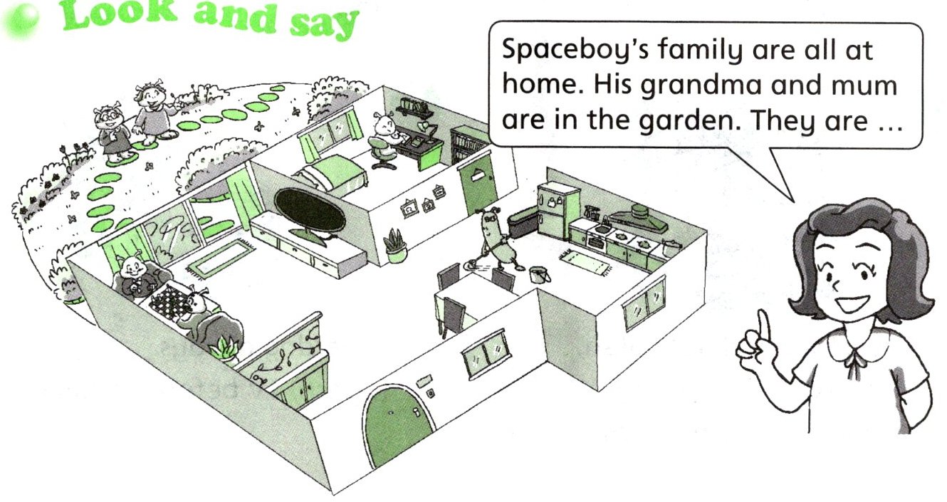 | Mother | washes the dishes (餐具) | (5) ______ ______ ______ |
