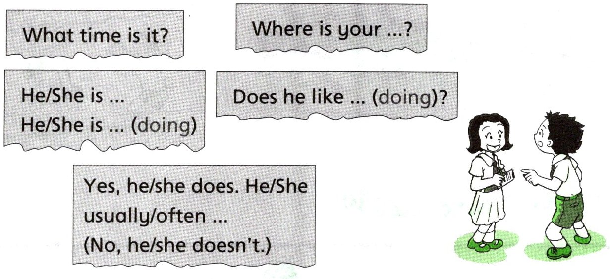 Ask and answer (与同学交流,了解同学的家人周六上午做些什么)