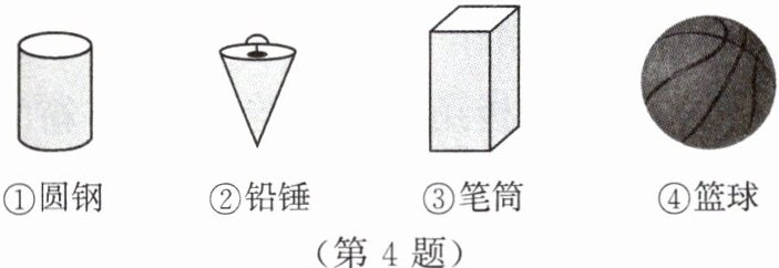 4. 如图,观察生活中的物体,根据它们所呈现的形状,分别写出与它们类似的几何体的名称。