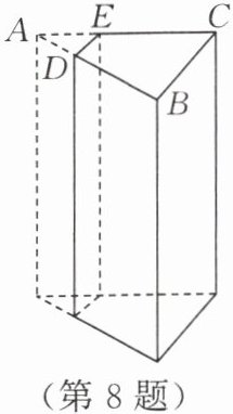 8. 如图所示的是上、下底面都是等边三角形的三棱柱,该三棱柱的高为15cm,底面棱长为8cm,现在截取一个底面周长为6cm的小三棱柱,当截取的小三棱柱的底面是等边三角形时,截面面积是
