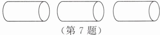 7. 如图,把一根长1.5m的圆柱形钢材截成三段后,表面积比原来增加了$12πm^2,$这根钢材原来的体积是