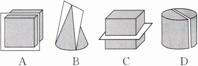 2. 将下列几何体用如图所示的平面切开,所得截面的形状与其他三个不同的是(