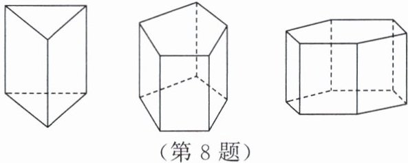 8. 【综合与实践】如图所示的是我们熟悉的三棱柱、五棱柱和六棱柱,请根据要求完成下列任务。