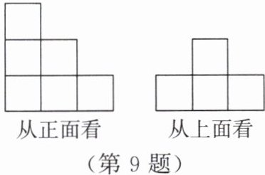 9. 用小立方块搭成的几何体,从正面和从上面看到的形状图如图所示,这样的几何体有多种可能的形状。它最多需要多少个小立方块?最少需要多少个小立方块?请分别画出以上两种情况下从左面看到的形状图。