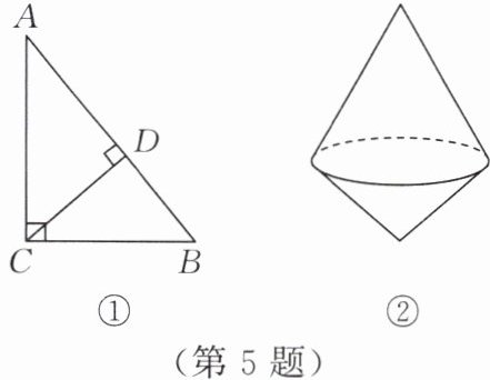 5. 图①是直角三角形ABC,∠ACB = 90°,CD是直角三角形ABC斜边AB上的高,将直角三角形ABC旋转可以得到图②的几何体,下列旋转方式正确的是(