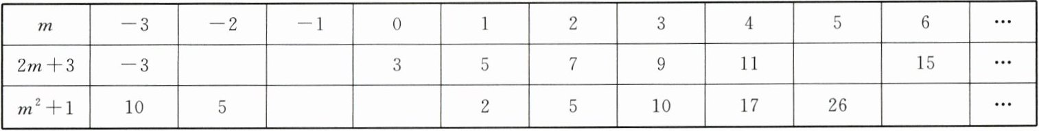 为探索代数式$2m + 3与m^2 + 1$的值的变化情况,小明通过填写下表,得到了相应的结论。