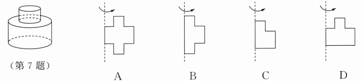 7. 下图是一个由平面图形绕虚线旋转得到的立体图形,这个平面图形是(