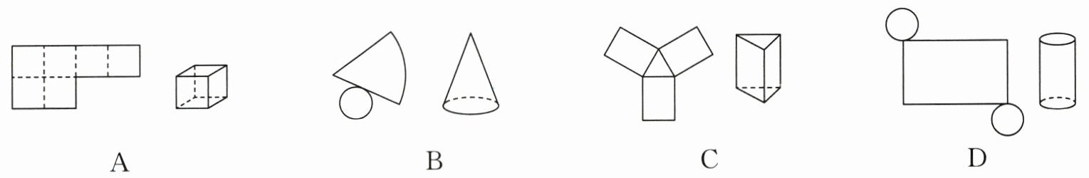 6. 如图,左侧的平面图形能够折成右侧的立体图形的是(