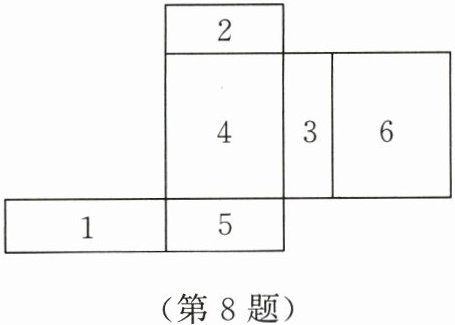 8. 如图所示的是一个长方体的展开图,各面分别标有数字 1~6,则这个长方体中两两相邻的三个面上的数字之和最大为(