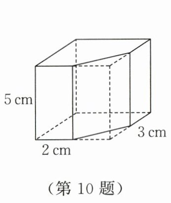 10. 如图,有一个棱长为 5 cm 的正方体,用竖直平面截去一个“角”,被截取的“角”的体积为$