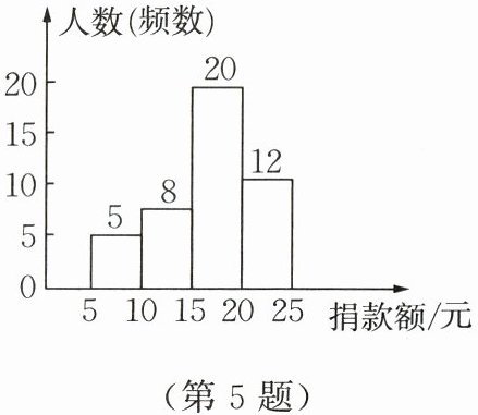 5. 如图所示的是某班 45 名同学爱心捐款额的频数直方图(每组含前一个边界值,不含后一个边界值),则该班捐款不少于 15 元的有(