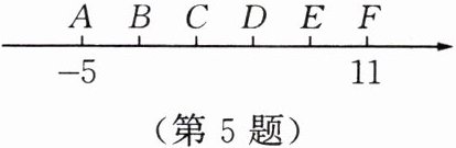 5. 如图,数轴上有$A$,$B$,$C$,$D$,$E$,$F$六个点,且$A与B$、$B与C$、$C与D$、$D与E$、$E与F$之间的距离都相等,则与点$C$表示的数最接近的整数是(