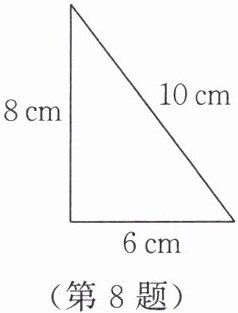 8. 【数学应用】学习了“面动成体”之后,小明用一个如图所示的两直角边分别为$6\ cm$,$8\ cm$,斜边为$10\ cm$的直角三角形硬纸板,绕其中一条直角边所在的直线旋转一周,得到了一个几何体。请画出所有符合题意的几何体,写出几何体的名称并计算出对应几何体的体积。(结果保留$\pi$)