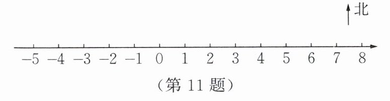 11. 【数学应用】周日,刘华一家三口开车去探望爷爷和外公。早上从家出发,向东行驶4 km到超市买东西,然后又向东行驶3 km到爷爷家,中午从爷爷家出发向西行驶12 km到外公家,晚上返回家里。
