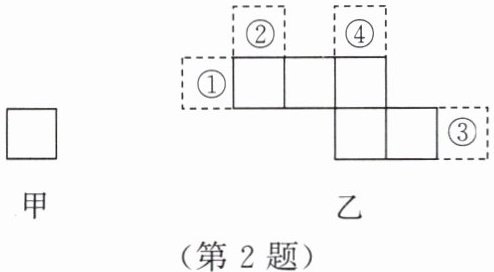 2. 图甲和图乙中所有正方形的大小一样,将图甲的正方形放在图乙中的①②③④某一位置,组成的平面图形能围成正方体的共有(