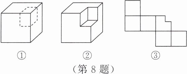 8. 【综合与实践】从大正方体(图①)中“挖去”一个小正方体后得到图②。