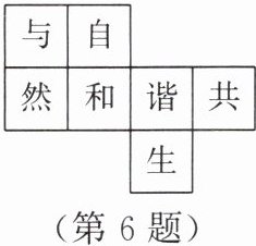 6. 山火、地震、洪水、泥石流等灾难,都在给人类敲响警钟,我们要学会敬畏自然、尊重生命,与自然和谐共生。小明制作了如图所示的硬纸卡片,剪去一个小正方形后,剩余部分恰好能折成一个正方体,则剪去的小正方形上的字是
