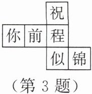 3. 水平放置的正方体的六个面分别用“前面、后面、上面、下面、左面、右面”表示。如图所示的是一个正方体的表面展开图。若图中的“似”表示正方体的前面,“锦”表示右面,“程”表示下面,则“祝”“你”“前”分别表示正方体的