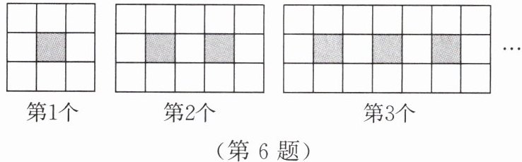 6. 如图,每个图案都由边长相等的灰、白两色正方形按一定规律拼接而成。依此规律,第$n$个图案中白色正方形的个数为